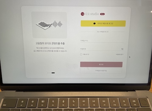 나디오 스튜디오 첫 화면에서 로그인해야 합니다.