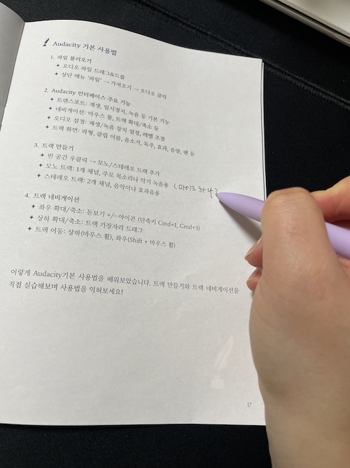 나는 지금 습관을 형성하는 챌린지 중입니다♥(미션 성공 시 소정의 수수료를 환급 받습니다.)링크 : https://bit.ly/3VJS0X5 지난 시간에는 오다시티(Audacity) 사용법에 대해 공부했습니다. 2025.02.28 - [