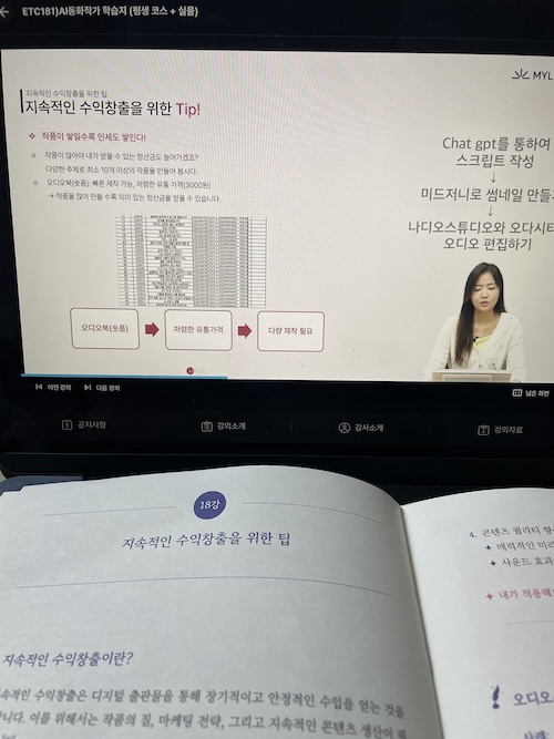 학습자 입장에서는 마지막 학습 내용으로 지속적인 수익창출 관련 내용을 커리큘럼으로 구성했다는 점이 참 감사하더라고요.